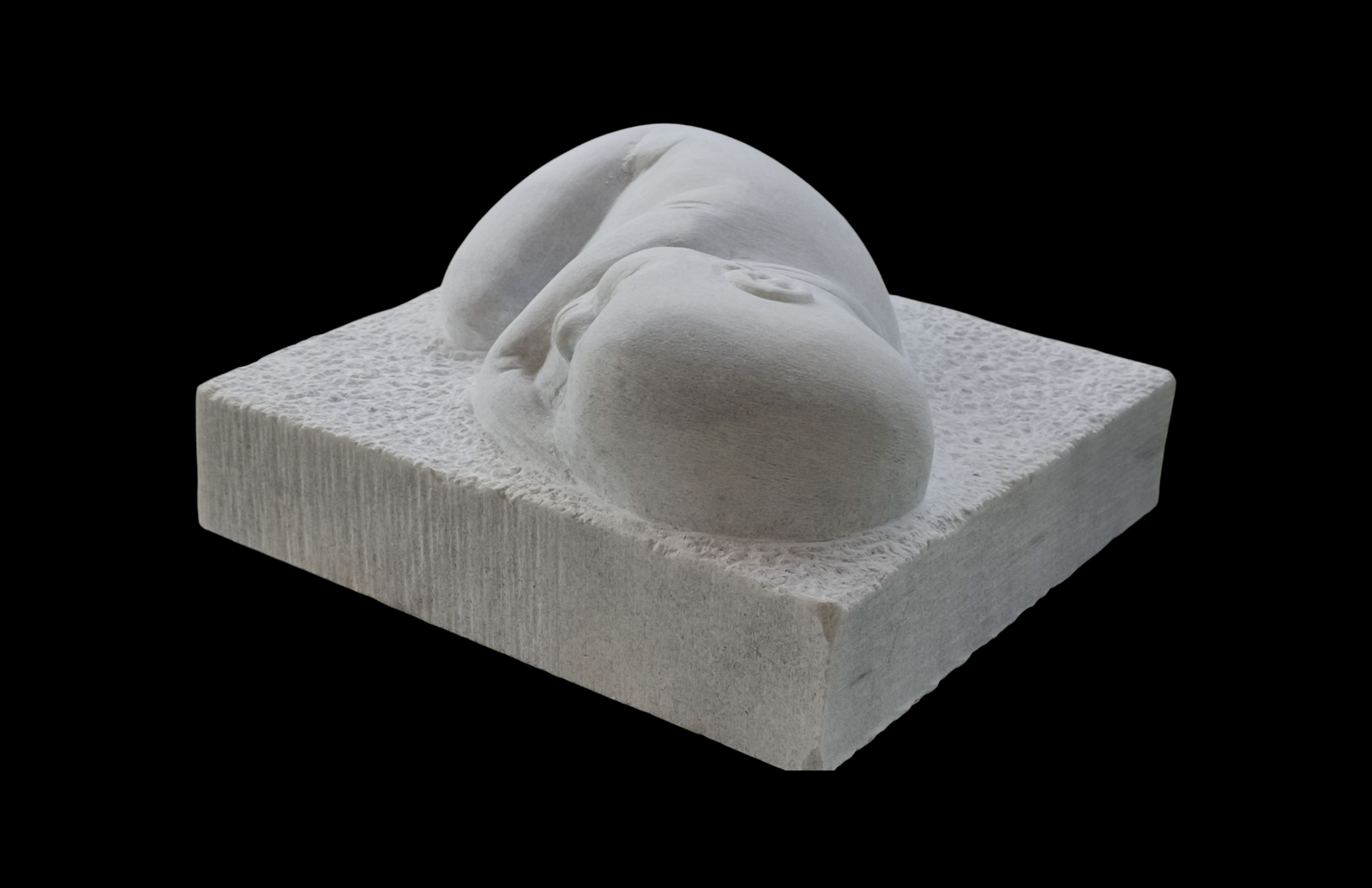 Un neonato addormentato, avvolto nel silenzio della sua prima esistenza. Non ancora toccato dal mondo, non ancora ferito, non ancora chiamato per nome. Solo respiro, curva, luce. Una scultura che celebra la fragilità come forza, il riposo come origine, la pelle come memoria del grembo.